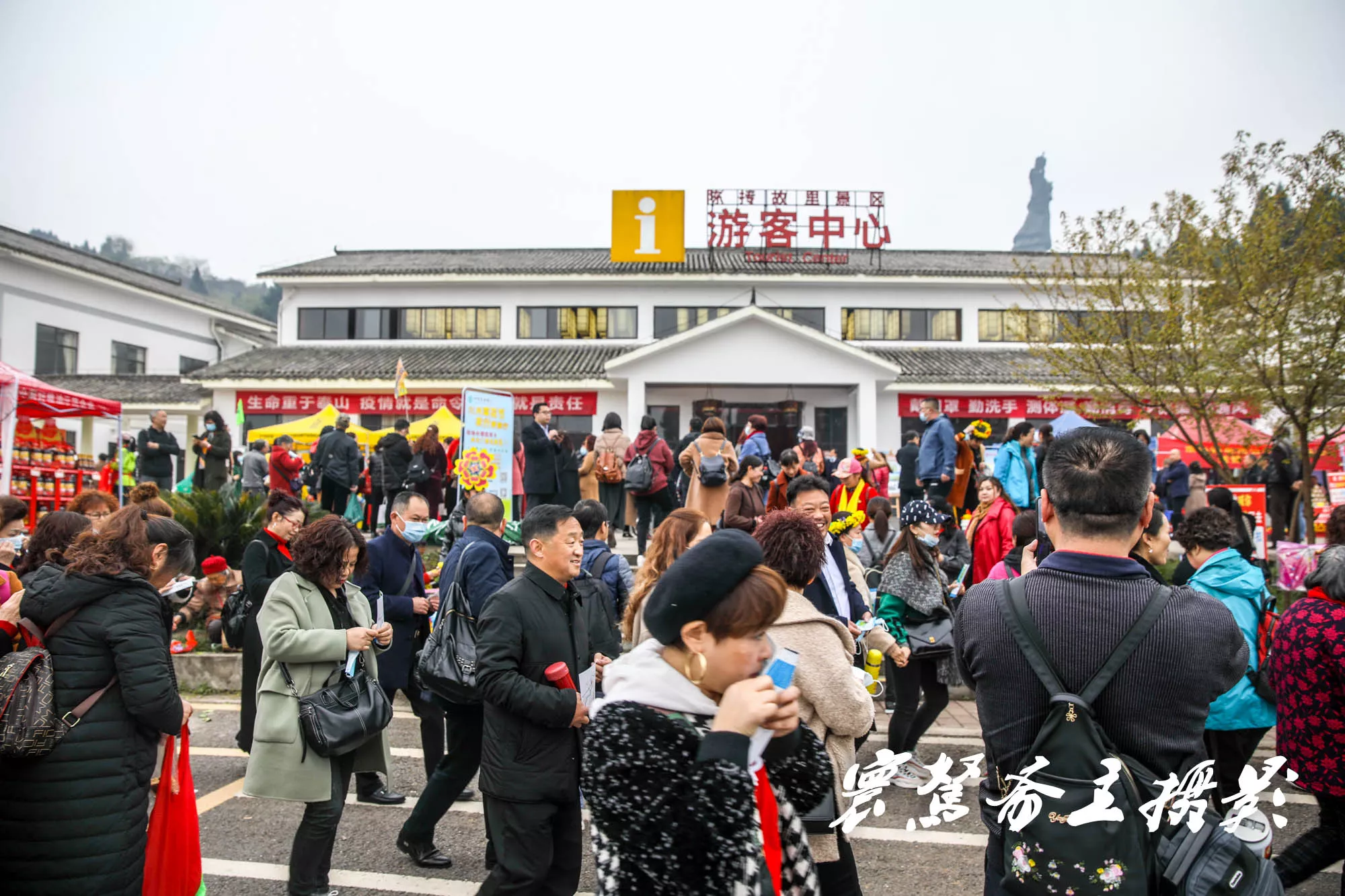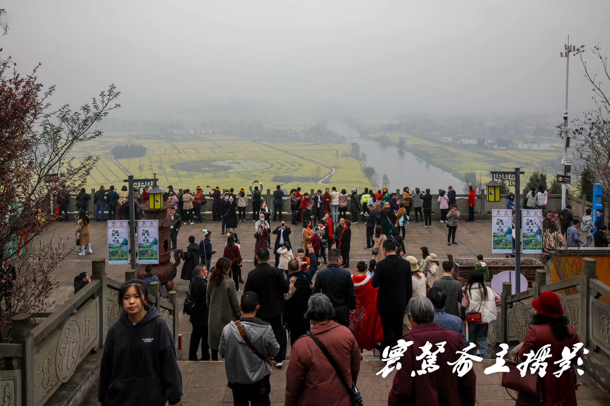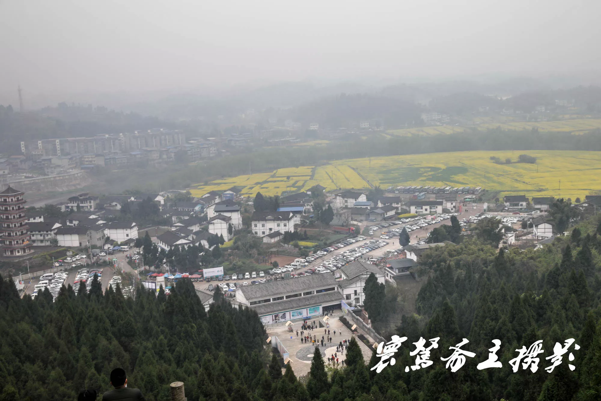 我們是昨天上午十點過到的崇龕“陳摶故里”景區,盡管天空中下著小雨,能見度很差,但昨天來這里看油菜花的人非常多,人氣還是非常旺的。據介紹現在景區新建了2300平米迎賓廣場和陳摶山山門,新建的游客中心至陳摶山登山步道,形成景區內部旅游環線,有效改善了景區的暢通性。