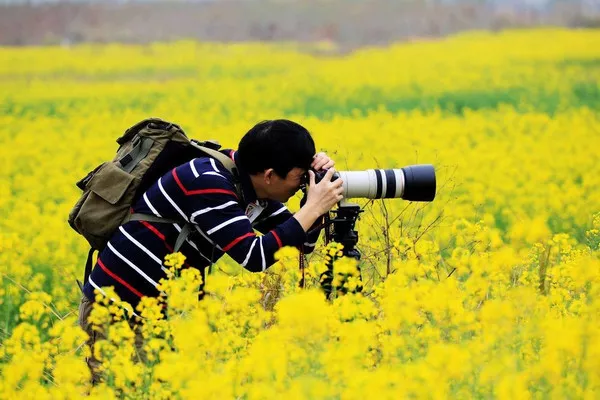 2、用顏色過渡使畫面更生動:除了日常平視拍攝油菜花田之外,還有兩種構圖上的選擇。第一種,可以選擇較低的機位拍攝挺拔的油菜花,讓油菜花占據畫面的大部分空間。注意光位的選擇,逆光拍攝有可能使花朵變黑;第二種,可以拍攝突出來的單株油菜,為了避免畫面單調,我們依然可以在鏡頭前面遮擋幾朵油菜花,通過前景的虛化,讓畫面更加豐滿。