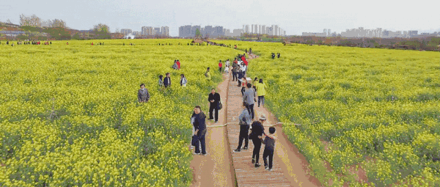 金浪涌動,花香襲人,遠遠望去呈現“人在花中走,猶在畫中游” 的奇幻美景!