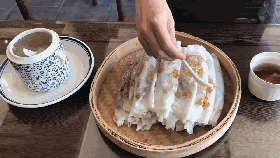簸箕粄是待客必不可少的客家美食。老七坊家的簸箕粄口感爽滑,粄皮厚實而勁道,菜料十足而入味。