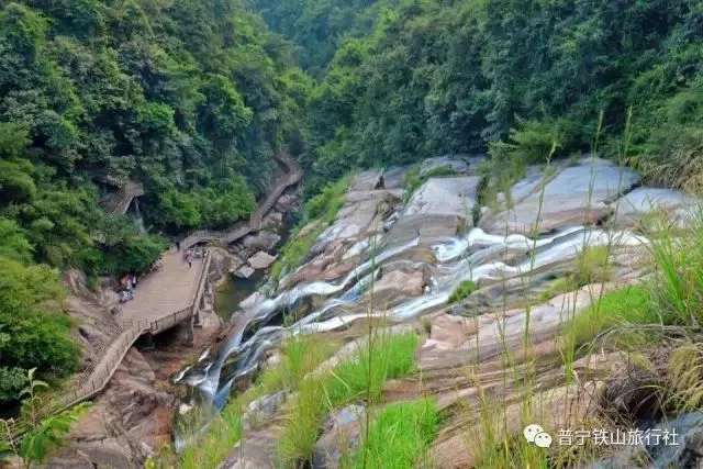 游步棧道全程6公里,分上瀑布群、下瀑布群兩個主要景點,有“神牛瀑”、“草鞋陂”、“通天瀑”、“飛魚瀑”、“披云瀑”、“佛光瀑”、“金龜瀑”等二十余條姿態各異的瀑布,窮盡人間飛瀑之美,是告別世俗喧囂,回歸綠-的絕佳去處。景區設了觀景臺和臺階、攔桿,可在此駐足戲水、憑欄遠眺、靜聽水聲。