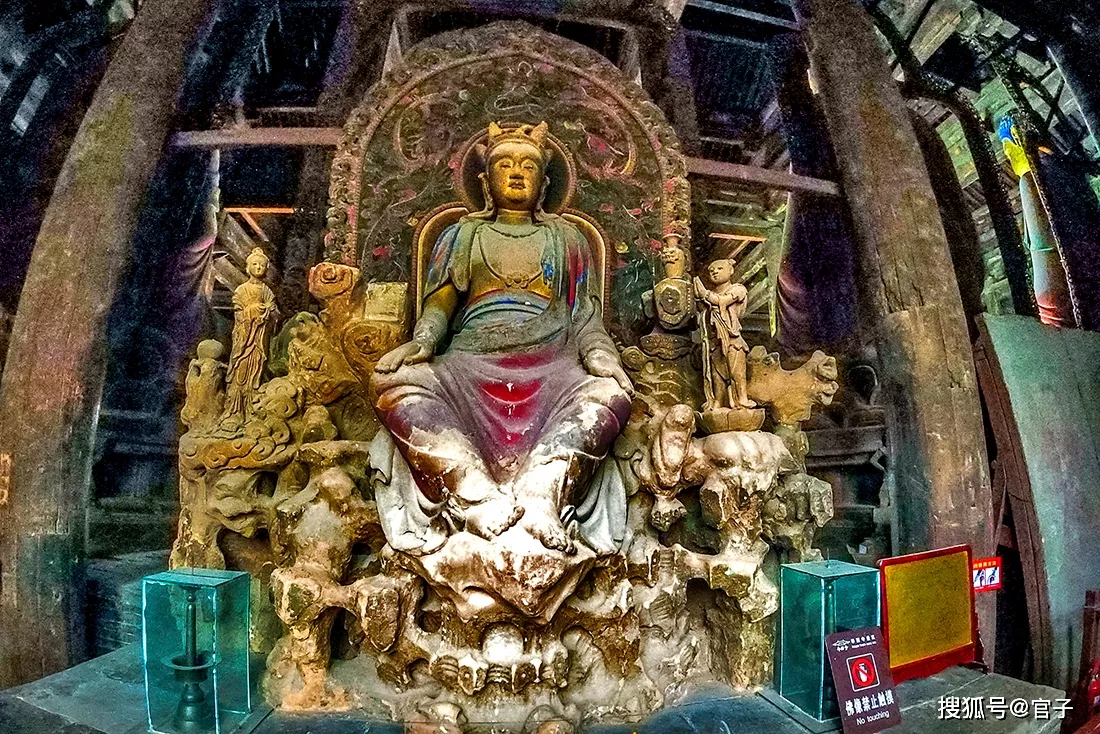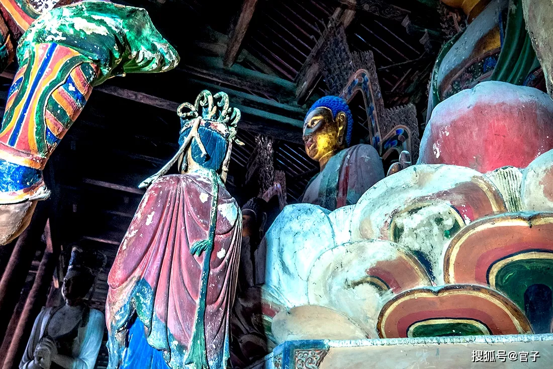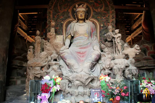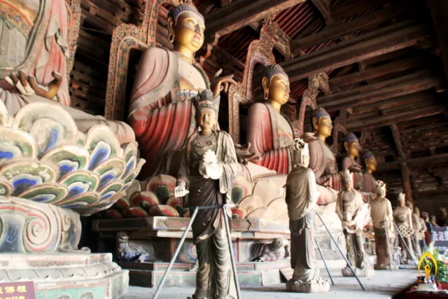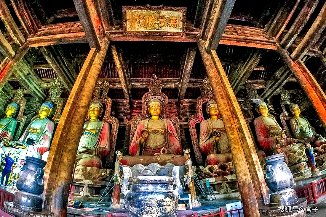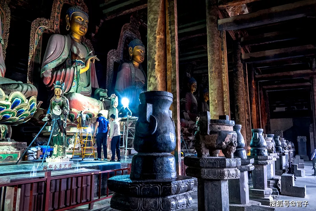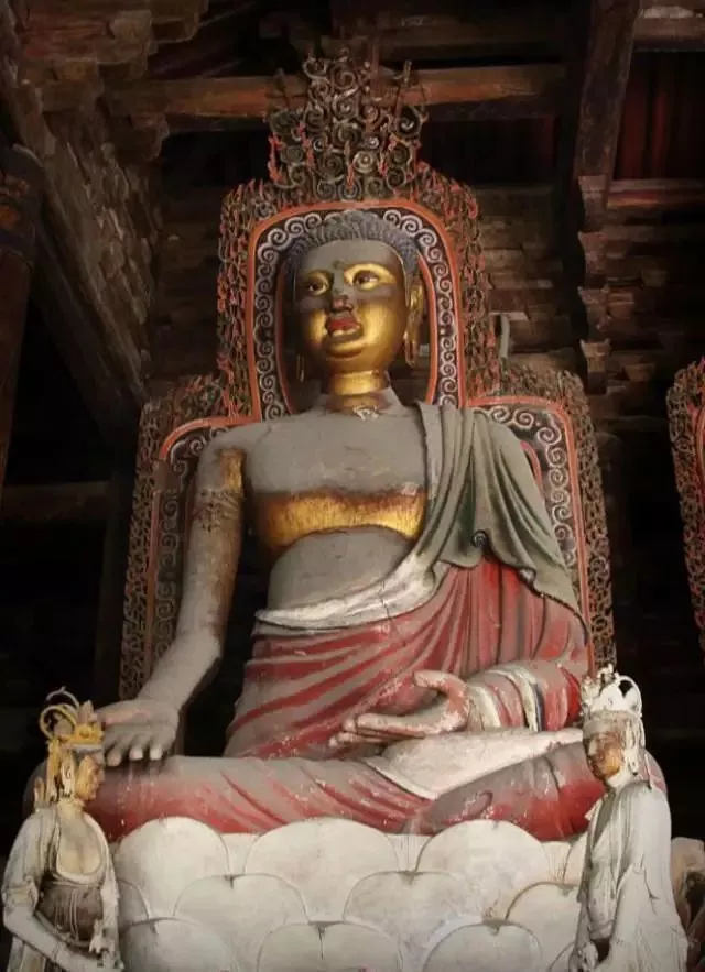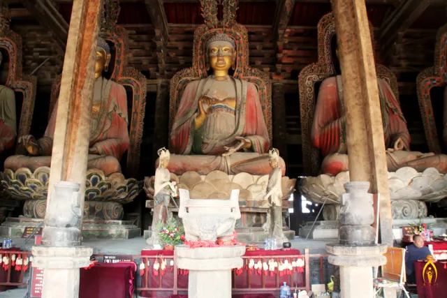 據了解,為保證大雄殿內一切文物保持遼代原樣,就連佛祖背后的灰塵,都不忍拂去,大雄殿的主要木構件、建筑彩繪、殿內彩塑佛像和彩塑脅侍像均為遼代原作。