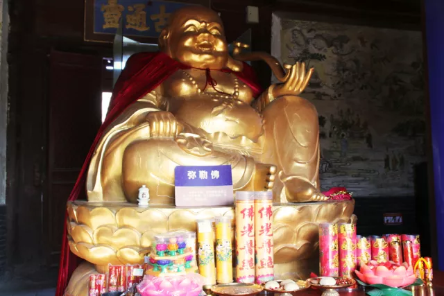 可這時大雄殿內最西邊的釋迦牟尼像四周瑞彩閃耀、祥光繚繞,眾金兵見此場景頓時紛紛扔掉手中的兵刃,跪倒求拜。幾天后,“佛祖顯靈”的事悄悄地傳遍了金營,金兵們都認為“佛祖殿”是不能褻瀆的。