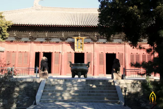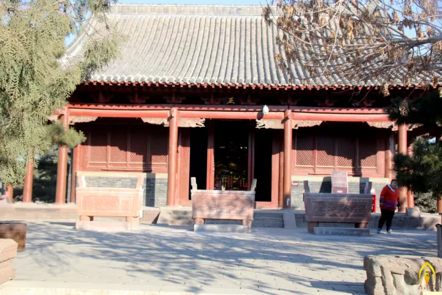 繼續前行是天王殿,為單檐歇山頂,面闊三間,進深兩間,通面闊16.14米,通進深12.22米。始建于金代天眷三年(1141年),原名萬壽殿,后改為無量殿,清康熙四十九年(1710年)重修。近代按照漢傳寺院傳統格局為依據,更名為天王殿。