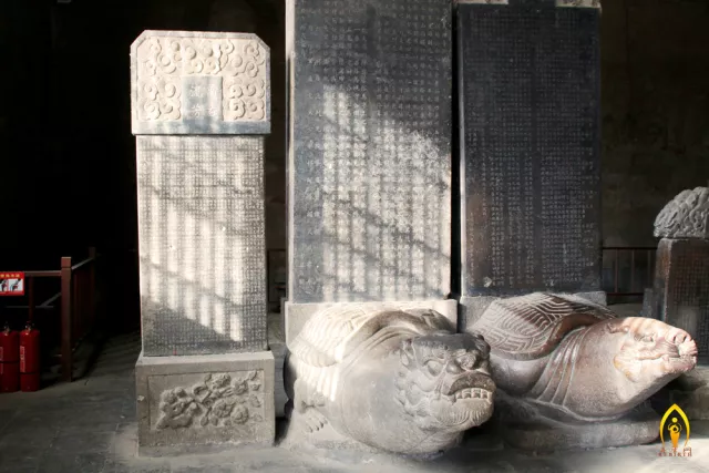 進門后東側有一間殿名為中華名匾展室,專門安放三塊大匾,分別為“大雄殿”“法輪天地”“慈潤山河”。三塊匾制作于乾隆五年(1740年),木制豎形,龍邊(凡六龍),有專家論證字跡為乾隆筆跡。三塊匾原放在正殿檐下,現在已用復制品替換。