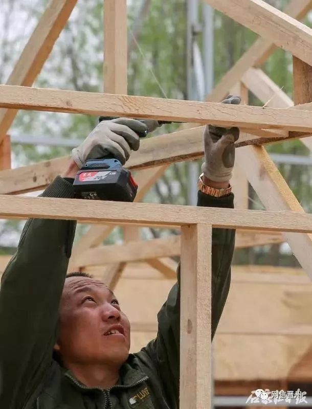 3月27日,在晉州市周家莊人民公社旅游區,工人在緊張施工。