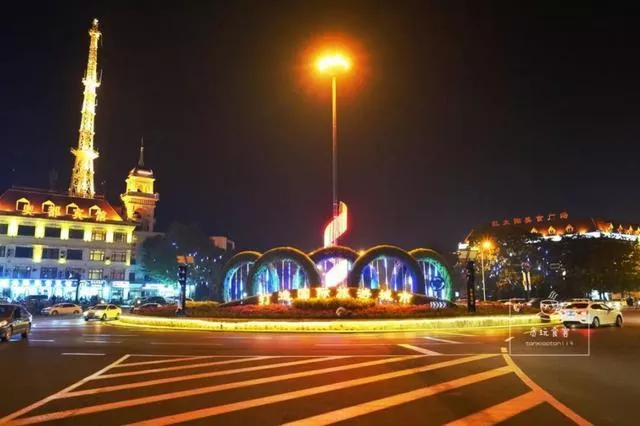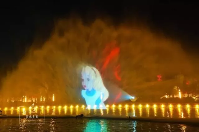 到了晚上八點,一定要走到音樂噴泉池旁,因為這里將開啟燈光水舞秀,噴泉隨著音樂舞動,變換著不同的“舞姿”,噴泉在燈光的映射下絢麗多彩。