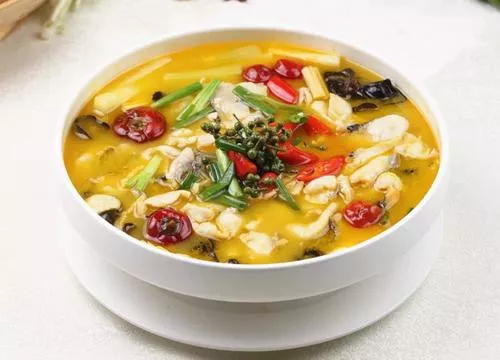 酸湯魚 酸湯魚苗侗族的一道傳統菜肴,據考證此菜肴最早源于黎平縣雷洞鎮牙雙一帶,制作原料主要有魚肉、酸湯、山倉子等香料,最初的酸湯是用釀酒后的尾酒調制的,后改用熱米湯自然發酵或者用食材本身的酸味來調制,而用酸湯烹制魚肴是貴州人最愛,很久以前就逐漸形成了,成菜后,略帶酸味、幽香沁人、鮮嫩爽口開胃,是貴州“黔系”菜肴的代表作之一。【詳細】中文名:酸湯魚外文名:Fish in sour soup分類:黔菜,凱里菜口味:酸辣主要食材:魚肉,酸湯,西紅柿,米酸主要工藝:燜煮發源地:黎平縣雷洞鄉牙雙村一帶