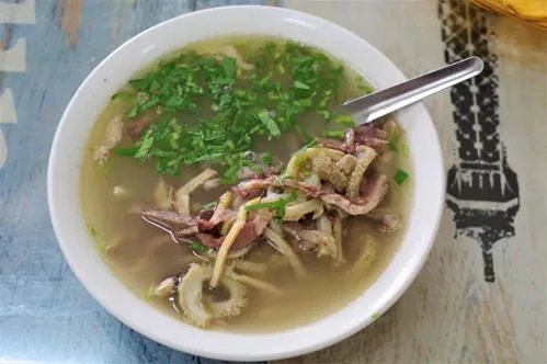 凌源羊湯 凌源羊湯是朝陽市凌源地方特色小吃,起源于清代,以羊雜、羊頭肉配多種作料,加羊骨老湯精制而成。凌源羊湯味道獨特,湯汁肥而不膩,為羊湯中的上品,其做法是先將煮熟的羊雜、羊頭肉切絲,用羊骨頭煮制老湯備用,將肉絲置于碗中沏以沸騰熱湯,加胡椒粉、辣椒面、香菜末、陳醋等各種調料即可食用。MAIgoo美食小編推薦凌源其他特色小吃:柏木燒雞、蕎麥撥面、山灣驢肉、凌北煎餅等等。