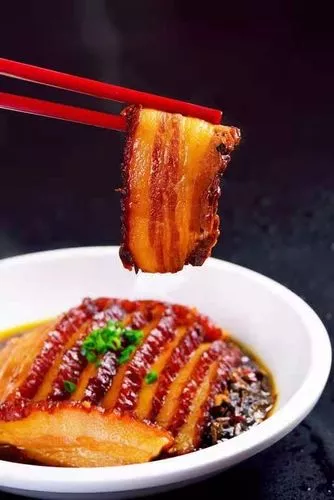 宜昌扣肉 扣肉是一道用豬肉制成的,常見的中國菜肴,2017年宜昌扣肉入選宜昌商務局主辦的“宜昌十大名菜”榜單。宜昌扣肉用自家做的梅干菜搭配新鮮的五花肉,肥而不膩,又格外下飯,不同人做的梅干菜味道總是會不一樣,但卻有一樣是相同的,那就是只屬于自己家的味道。扣肉的“扣”是指當肉蒸或燉至熟透后,倒蓋于碗盤中的過程。