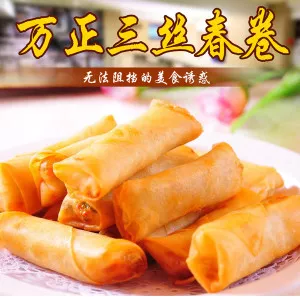 荊州三絲春卷 荊州三絲春卷,原名春盤,是荊州傳統名菜,是一種以面粉攤成薄皮,內包雞絲、火腿絲、香菇絲加嫩菜混合的餡,卷成筒狀,用旺火炸酥的特色菜。三絲春卷是薄餅包餡,攤于盤上,后來演變成圓筒狀,并用油炸,疊滾成卷。此菜為春節前后的應市菜,含有迎春之意,它色澤金黃、外皮酥脆,味道鮮美,是春節筵席上必不可少的時令佳肴。