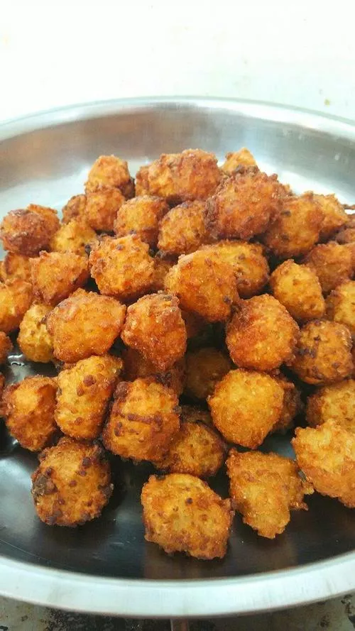 洛陽焦炸丸子 洛陽焦炸丸子,又稱酸湯焦炸丸,是洛陽水席里的一道菜肴,是洛陽水席二十四道菜種第八道菜,為洛陽水席八大件里的其中之一,屬于豫菜。焦炸丸子是將粉條水發后切碎,加調料及面粉、淀粉拌勻,做成丸子經溫油先小火炸干丸子中的水分,再用熱油將丸子炸焦,趁熱倒入酸辣湯中,味道酸、辣、咸、鮮、香,口感焦、酥,別具風味。焦炸丸子又是洛陽人民喜聞樂見的家常菜,幾乎家家都會做。