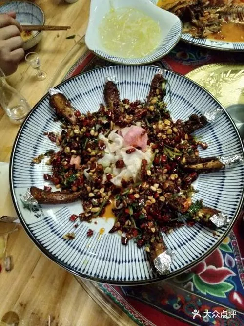 苗家棒棒豬 苗家棒棒豬是貴州銅仁松桃苗族自治縣苗族的一道特色菜,入口不膩、味道鮮美、伴有香味,主要用于待客和過節,用來接待遠道而來的客人。苗家棒棒豬選用本地生產的黑毛豬,豬生長至40千克左右用木棍將其打死,讓血液滲透到肉體,然后用火燒去毛洗凈,取出內腹,將切成塊狀,加入清水煮半熟、去除腥味,取出再切成三角形狀,經過爆炒、蒸、小火燜等10余道工序,放上適量的鹽、蔥、姜、辣椒等佐料制作而成。