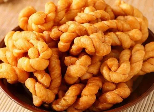觀音素麻花 觀音素麻花是四川省遂寧市龍鳳古鎮的特色美食,是眾多遂寧人記憶中的年味,被遂寧市旅游局評為“遂寧十大特色名小吃”。觀音素麻花屬于川渝麻花流派,經過純菜籽油加老面粉和制而成,口感酥脆,擁有椒鹽味、咸甜味、原味等多種口味,其色鮮味美,清脆可口,吃起來又酥又香,嘎嘣脆。