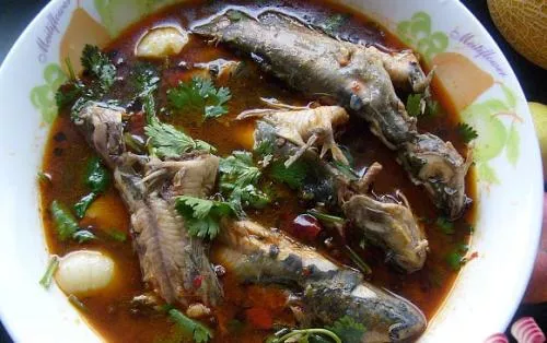 墨沖角角魚 墨沖角角魚是黔南都勻地區的一道特色美食,以量多味美而著稱。墨沖角角魚制作工藝講究,主要以本地角角魚和本地水為原料,烹飪時采用水煮的方法,食用時加鹽蘸著吃,在當地堪稱一絕。因為墨沖角角魚肉質鮮美細嫩厚實,煮熟的魚分離下來的肉一點不含刺,一直都深受當地人的喜愛。