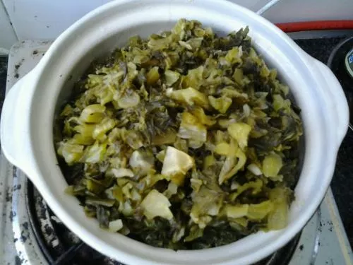 都勻酸菜 都勻酸菜是貴州省黔南州都勻市的特色美食,是都勻風味四酸之一,爽口解膩,香味誘人,十分開胃。都勻酸菜歷史悠久,可與獨山鹽酸蔬菜媲美,其制作方法是將蔬菜洗凈晾干,在陽光下洗至不再滴水,切成寸長的葉子,再拌上適量的蒜葉片、甜酒、辣椒面,鹽和高檔白酒,一起放入陶罐中,蓋上壇蓋,用水包住罐子,腌一周,然后舀出來拌菜。