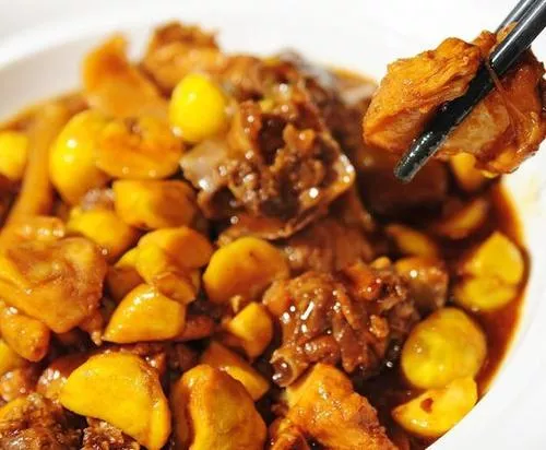 天師板栗燒土雞 天師板栗燒土雞是江西省傳統的地方名菜,江西鷹潭龍虎山出產的天師板栗,個大香甜,淀粉豐富,是歷代天師特別喜愛的果品和滋補品,素有“人間仙果”之稱。而這缽天師板栗與當地農家喂養的土雞相配,在文火中慢慢地燒出來的“天師板栗燒土雞”,油光發亮,清香思溢,是這里很有名的美味佳肴,能吃這道菜,可謂“國 賓”的待遇。【詳細】中文名:天師板栗燒土雞主要食材:土雞口味:咸味輔料:板栗
